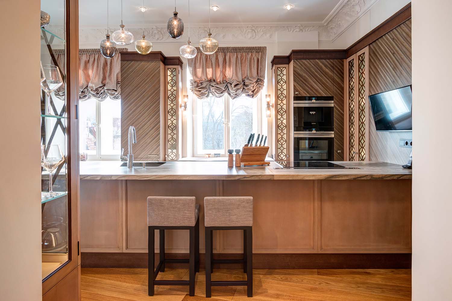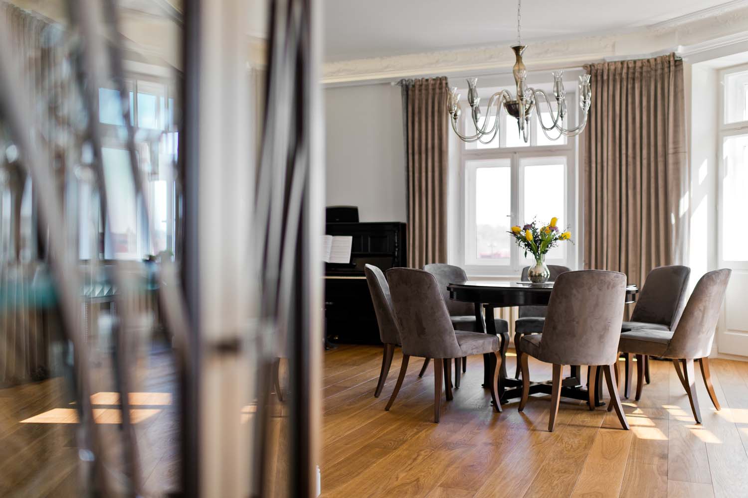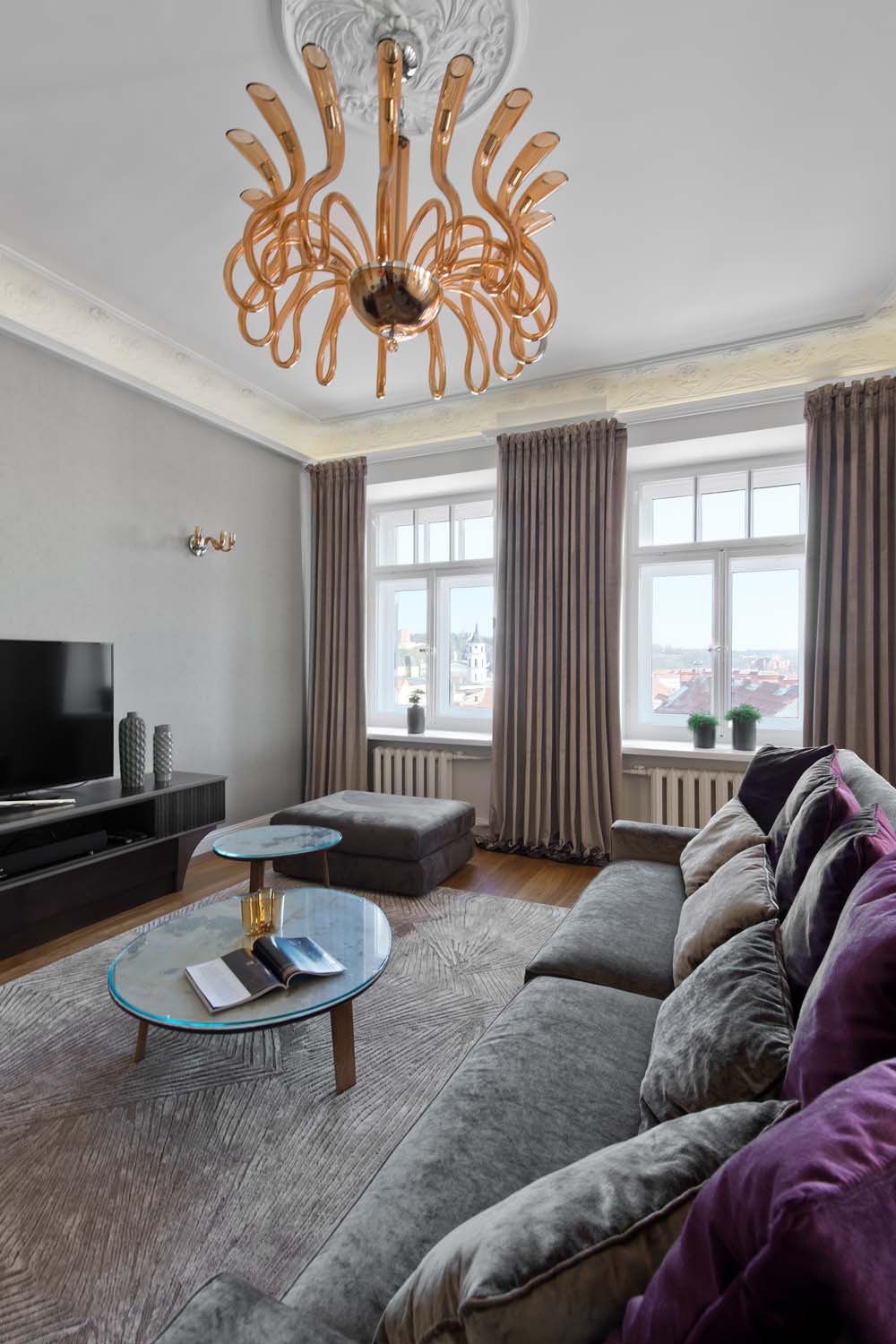 Sena palėpė virto puikiais senamiesčio apartamentais, o pro langus ir nuo terasos atsiveria nuostabi senojo miesto panorama. Interjere vyraujantis architektūros paveldas, įrengiant ir būtinus šių dienų patogumus, butą pavertė jaukiu ir moderniu prabangaus gyvenimo židiniu.